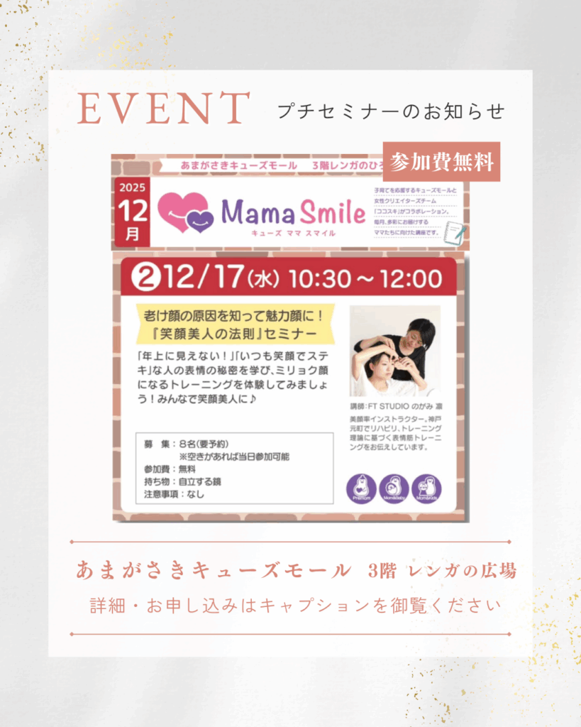 あまがさきキューズモールにてプチセミナーを担当させていただきます。